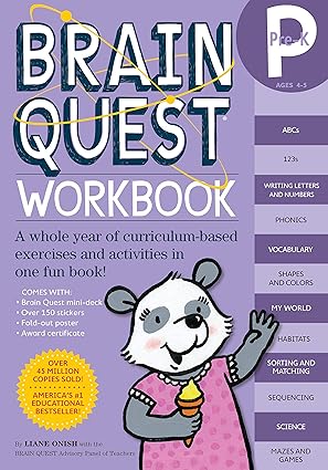 Brain Quest Pre-K Workbook reviews and reinforces what kids are learning in the classroom in an instantly engaging, entertaining way. Each page is jam packed with hands-on activities and games covering ABCs, 123s, writing letters and numbers, shapes and colors, vocabulary, phonics, and much, much more—with friendly illustrations throughout.